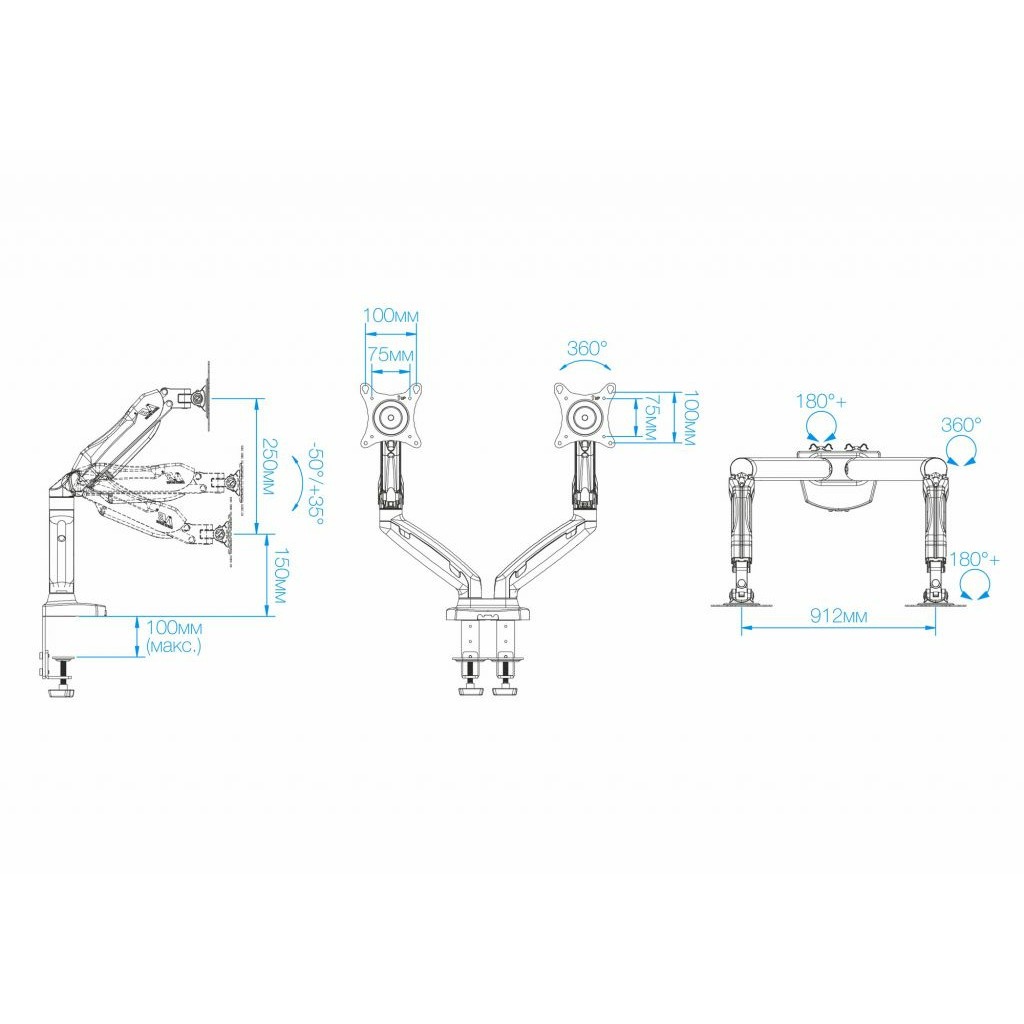 Кронштейн NB F160 не оставит никого равнодушным, не только потому, что на него можно установить сразу 2 монитора, он подходит для всех мониторов и телевизоров, диагональю от 17" до 27" и весом от 2кг до 6,5 кг, но и потому, что позволяет легко и просто передвигать монитор в любых плоскостях, и даже менять его положение по вертикали! Всё это благодаря газовой пружине, располагающейся внутри корпуса кронштейна, именно она может зафиксировать монитор в любом положении и менять его не прилагая существенных усилий. Поворачивайте монитор вокруг своей оси на 360°, наклоняйте вверх и вниз, придвигайте или удаляйте от себя, поднимите монитор повыше или опустите пониже - всё это может наш кронштейн NB F160.
