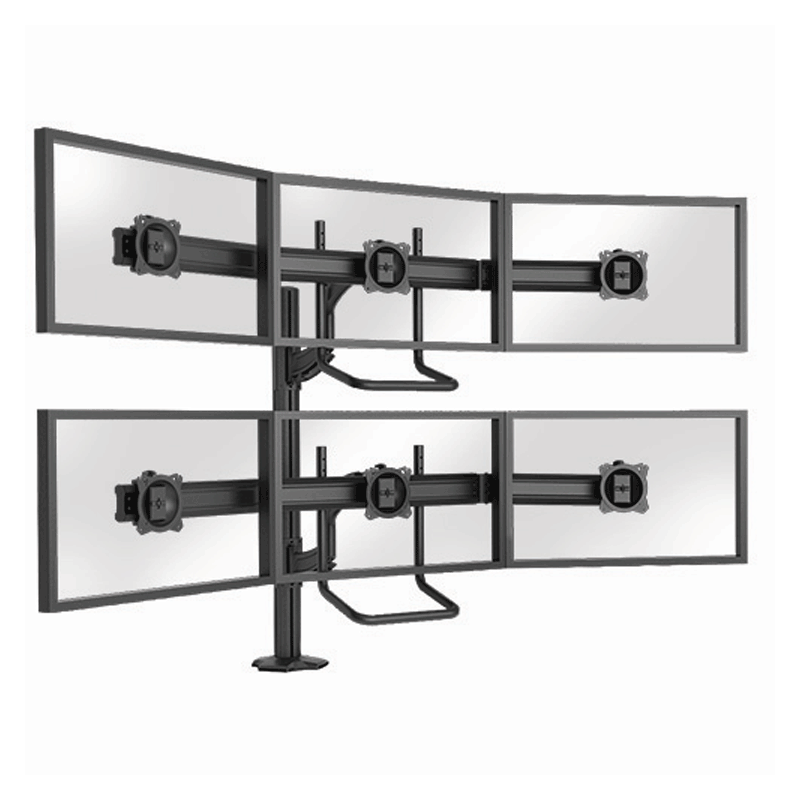CHIEF K4G320B - настольное крепление для 6-и мониторов 3х2, цвет черный, монтаж в отверстие столешницы, регулировка выноса, высоты и панорамы, VESA: 75x75, 100x100, вес каждого монитора до 6,8 кг., портретная/ландшафтная ориентация. Крепление выполнено из высококачественных материалов, благодаря чему обладает повышенной прочностью. Современный дизайн и простота регулировки.