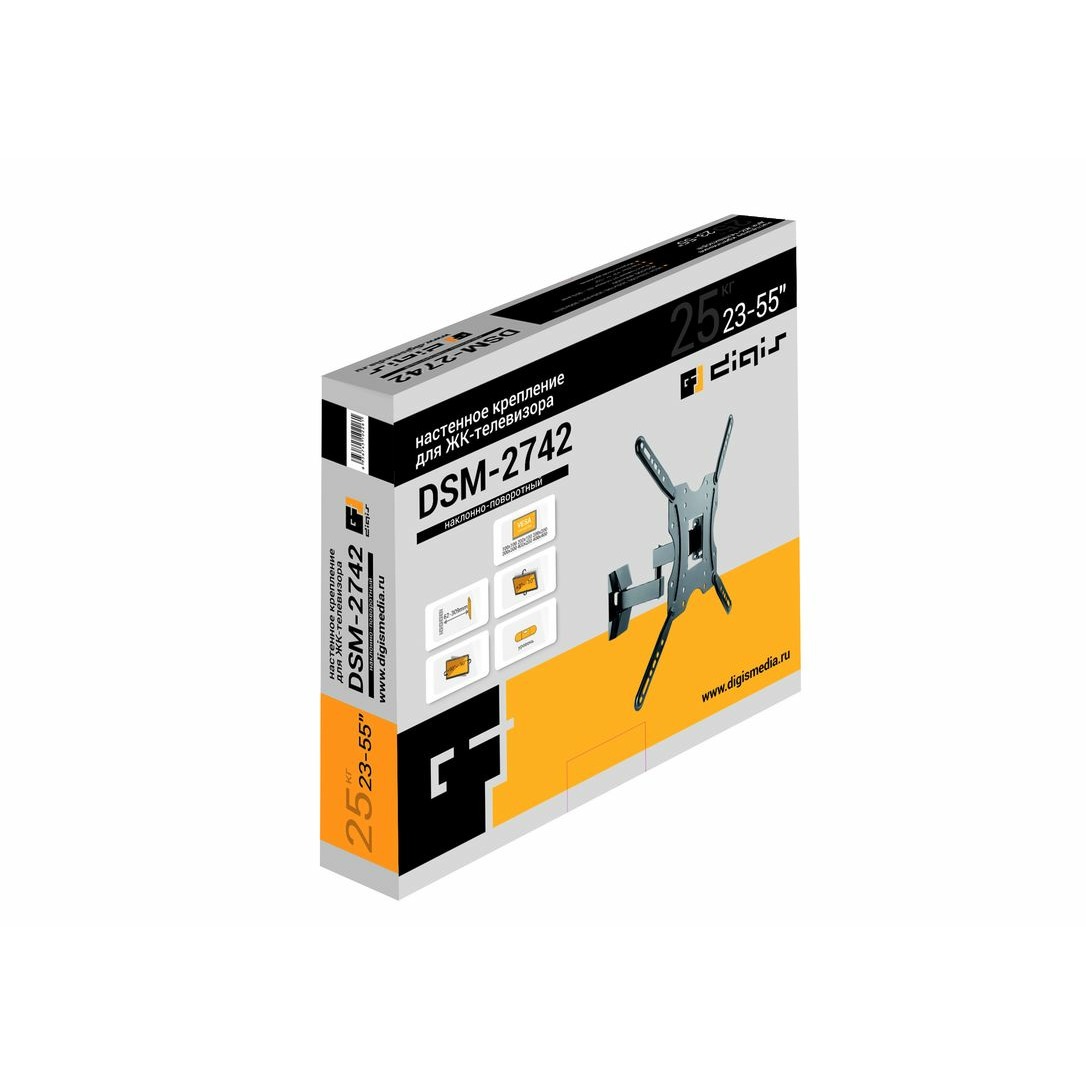Digis DSM-2742 - наклонно-поворотный кронштейн для телевизора или монитора с диагональю экрана до 55 дюймов (140 см) и максимальным весом до 25 кг.