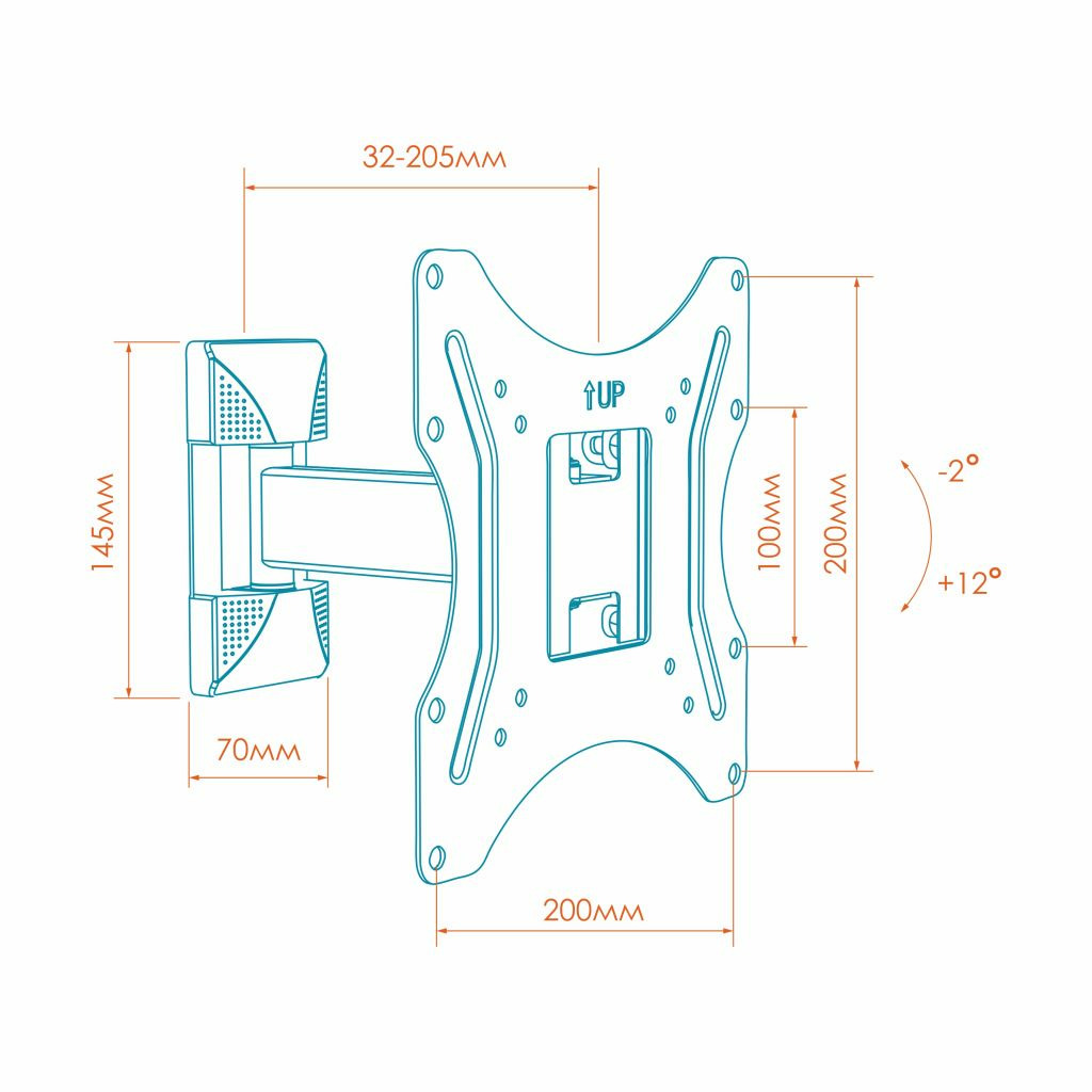 - ЛЁГКАЯ РЕГУЛИРОВКА НАКЛОНА. Надёжная конструкция без особых усилий позволит осуществить наклон даже тяжёлого телевизора лёгким движением на угол от -2 ° до +12°.