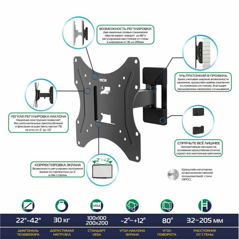 Купить кронштейн наклонно-поворотный Kron M2S Black