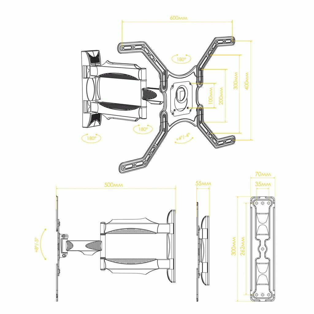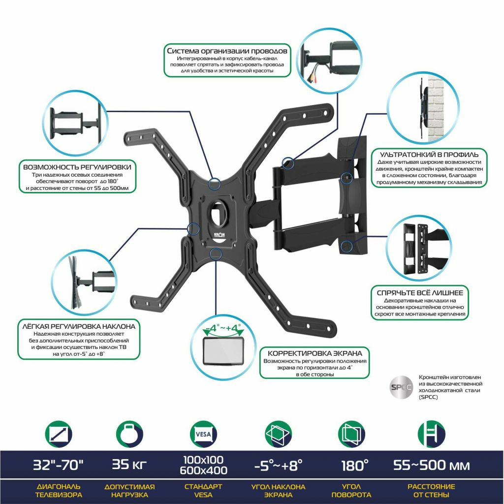 - ЛЁГКАЯ РЕГУЛИРОВКА НАКЛОНА. Надёжная конструкция без особых усилий позволит осуществить наклон даже тяжёлого телевизора лёгким движением на угол от -5 ° до +8°.