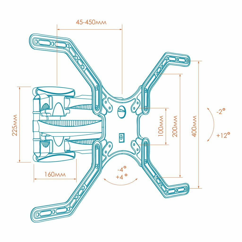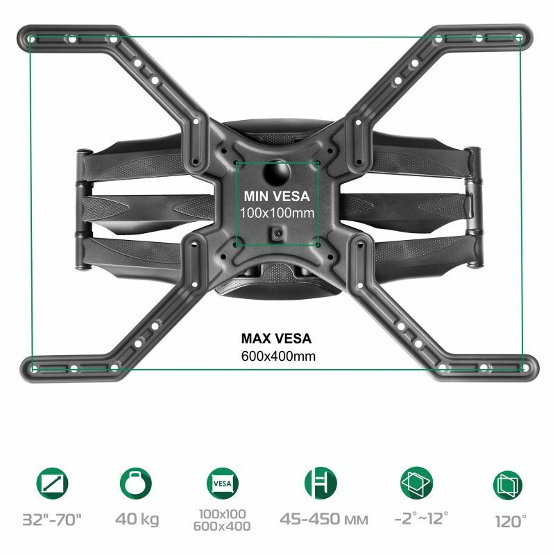- ЛЁГКАЯ РЕГУЛИРОВКА НАКЛОНА. Надёжная конструкция без особых усилий позволит осуществить наклон даже тяжёлого телевизора лёгким движением на угол от -2 ° до +12°.