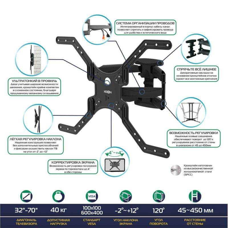 Преимущества ТВ кронштейна KRON M5L:
