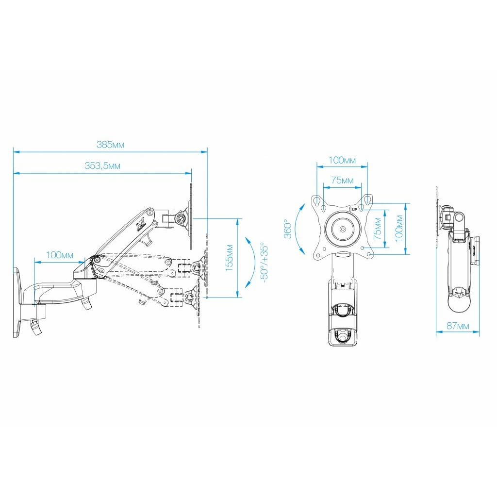 | Вылет от стены | 87~385 мм |