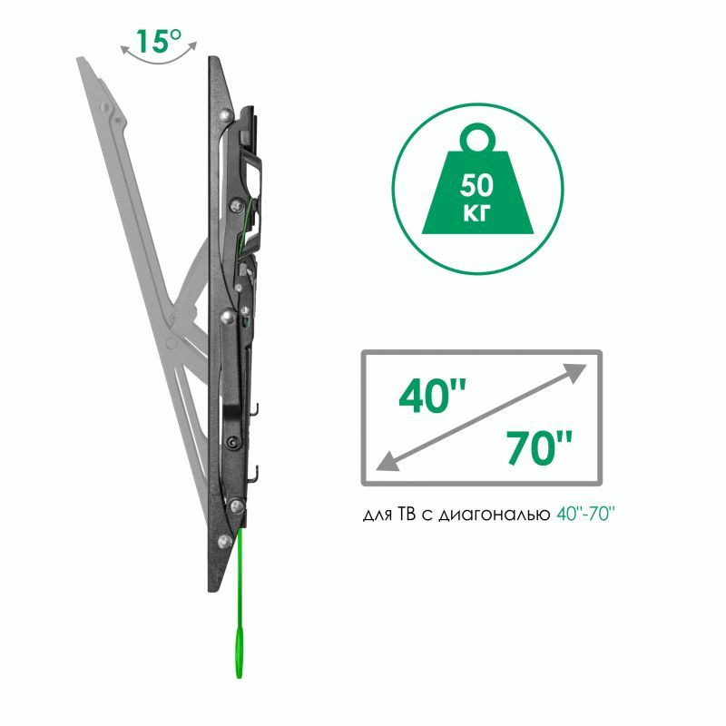 - РЕГУЛИРОВКА НАКЛОНА ТВ. Возможность наклонить телевизор не прилагая усилий до 15°.