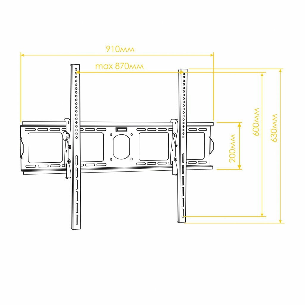 - ШИРОКИЙ ДИАПАЗОН VESA КРЕПЛЕНИЙ. Перемещая направляющие на основании кронштейна можно выбирать подходящее для ТВ крепление в диапазоне от 100х100 до 800х600 мм, в зависимости от диагонали телевизора.