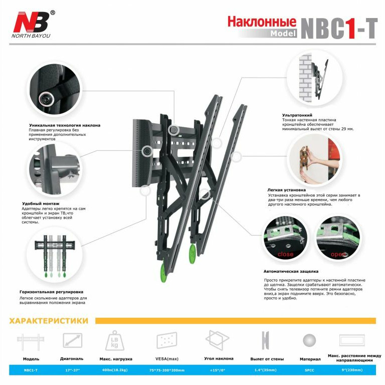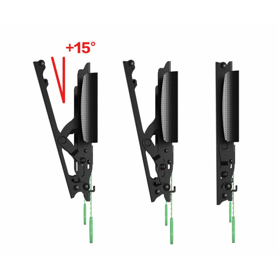 Наклонные кронштейны для настенного крепления телевизора. Настенный кронштейн похож на плоский / низкопрофильный кронштейн, но позволяет телевизору наклоняться вниз. Это может улучшить ваш обзор телевизора, особенно если он установлен высоко на стене или вы используете телевизор в спальне, где угол обзора ниже.
