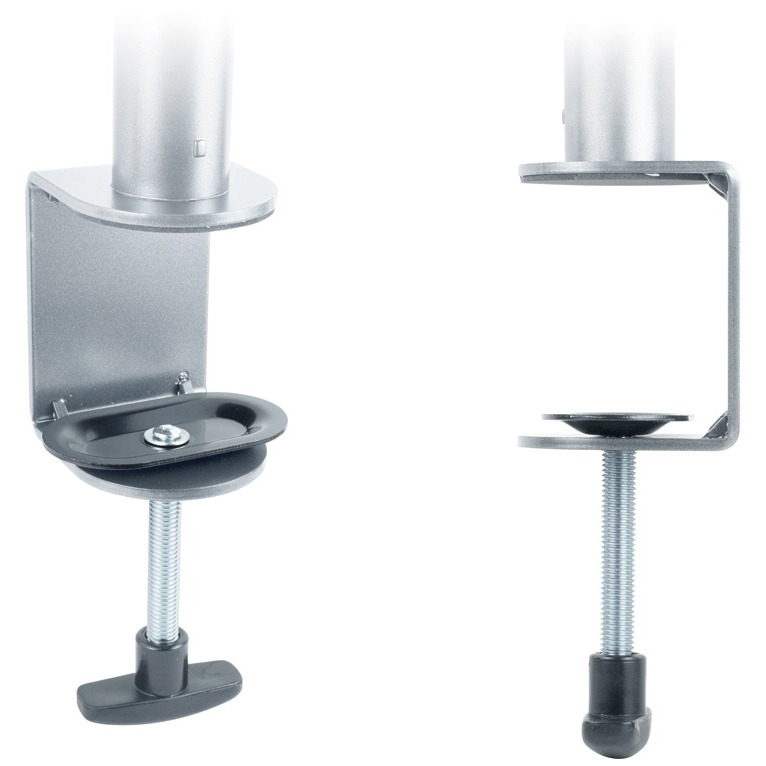 Кронштейн для монитора ErgoFount BTFS6-202DC монтируется за край стола с помощью струбцины и имеет основание в виде пластины.