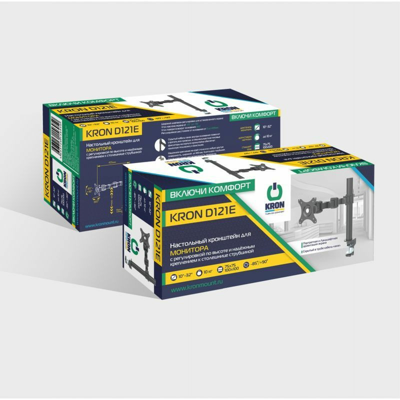 - УСТАНОВКА НА КРАЮ СТОЛА дает возможность надежно закрепить кронштейн KRON D121E в нужном месте на столешнице толщиной до 100 мм.