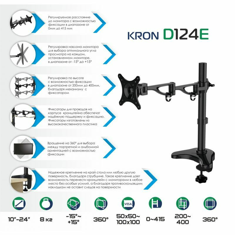 Преимущества настольного кронштейна KRON D124E: