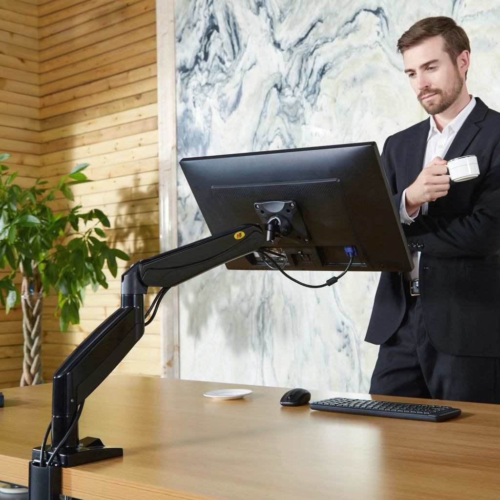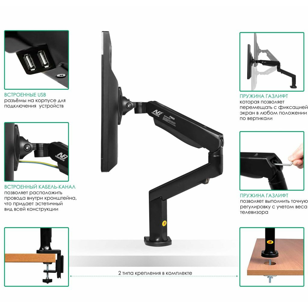 Кронштейн NB F90А не оставит никого равнодушным потому, что позволяет легко и просто передвигать монитор в любых плоскостях, и даже менять его положение по вертикали! Всё это благодаря газовой пружине, располагающейся внутри корпуса кронштейна, именно она может зафиксировать монитор в любом положении и менять его не прилагая существенных усилий.