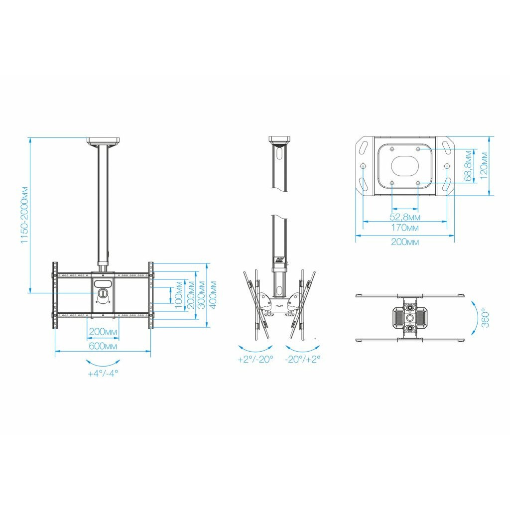 Надёжная конструкция кронштейна NB T5520 позволяет установить телевизоры, суммарным весом до 56,8кг, что в купе с максимальным вылетом от потолка 2 метра и регулировкой кронштейна в разных плоскостях делает по истине универсальным.
