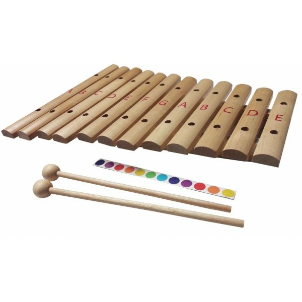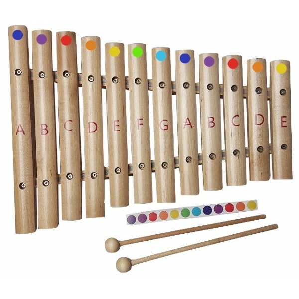 Ксилофон Flight FX-12R изготовлен из древесины, прошедшей длительную подготовку в специальной камере, вследствие чего древесина приобрела необычайно яркое звучание и стала более стабилизированной при изменении влажности, то есть поддерживает строй лучше, чем обычная. У данной модели 12 деревянных брусочков, соответствующих нотам, и 2 палочки. Купить ксилофон можно для детей и взрослых, специально для этой модели прилагается комплект наклеек, с помощью которого легко научиться играть по системе цветных нот Семицветик. Наклейте наклейки на верхнюю часть клавиш, выберите песню, и начинайте играть – цветные ноты не требуют знаний музыкальной грамоты!