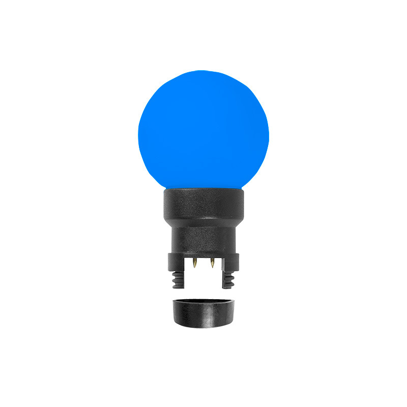 LED Лампа вместе с патроном. Колба лампы диаметром Ø45 мм. Монтируется с помощью шестигранного ключа Т10. Цвет свечения - Синий, колба выполнена в цвете свечения Подходит для двухжильного белт-лайта Номинальная мощность светодиодов составляет 1 Вт, полная мощность для выбора контроллера и расчетов при подключении составляет 6 ВА.