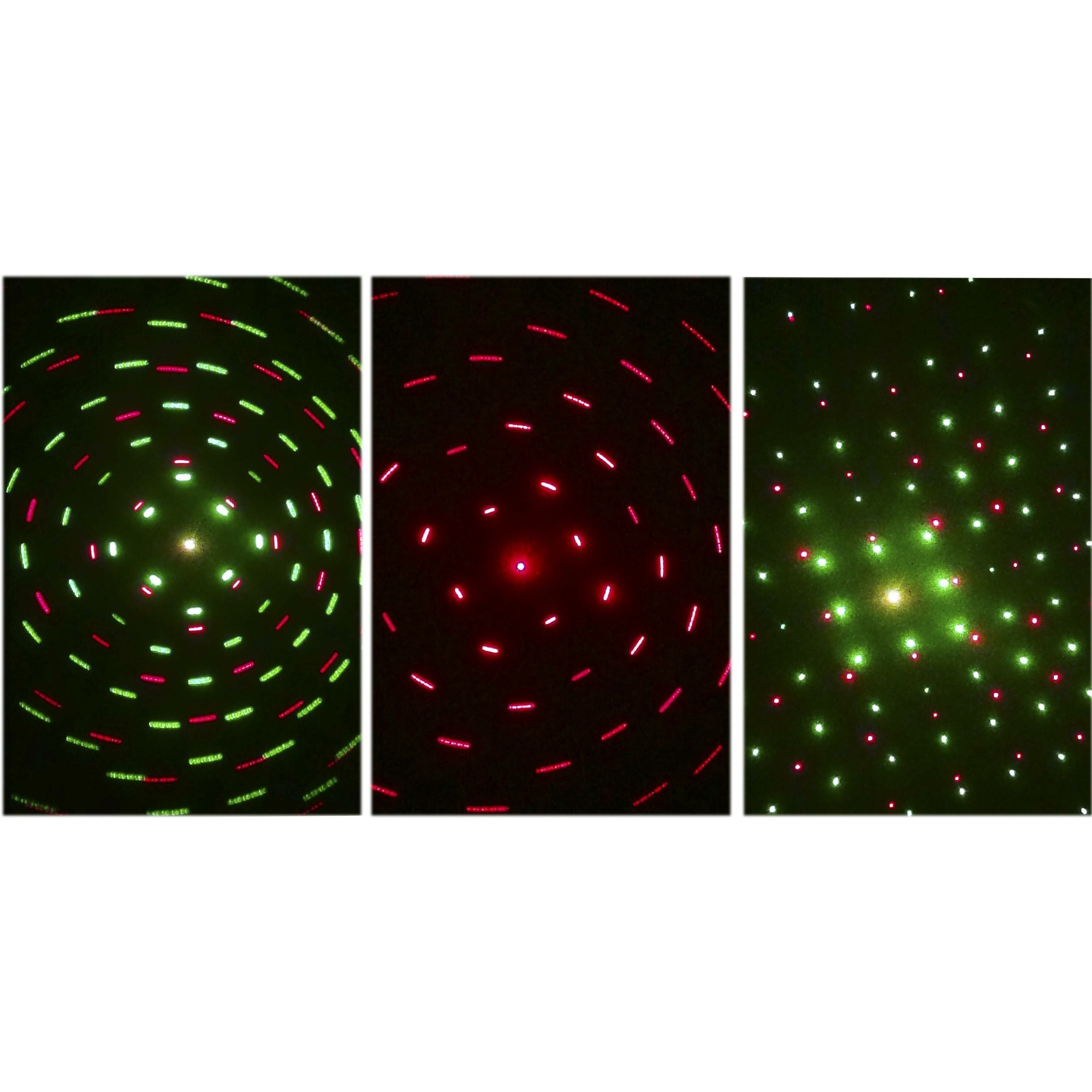 Дистанционное управление: Посредством пульта управления можно выбирать звуковую или музыкальную активацию, а также цвет (зеленый, красный, зеленый и красный), скорость (обычная, быстрая, очень быстрая) и рисунок.