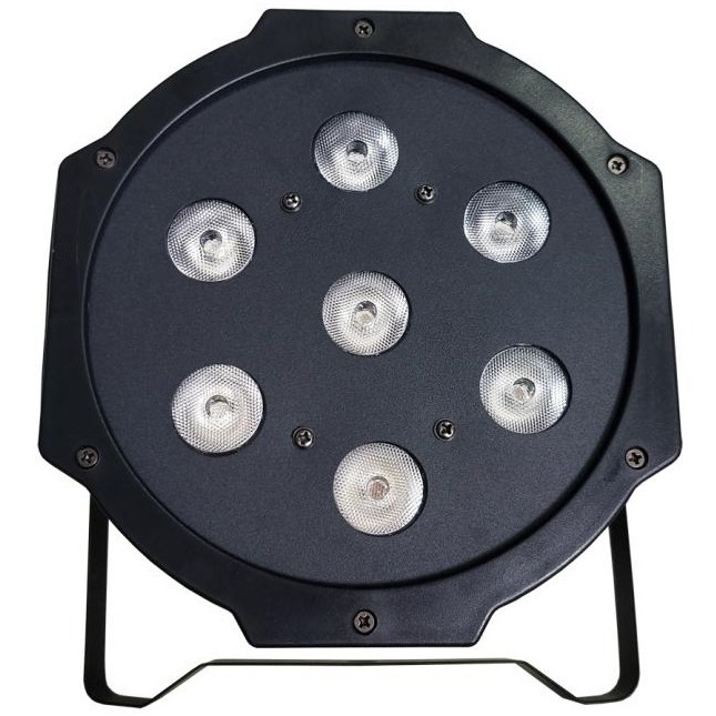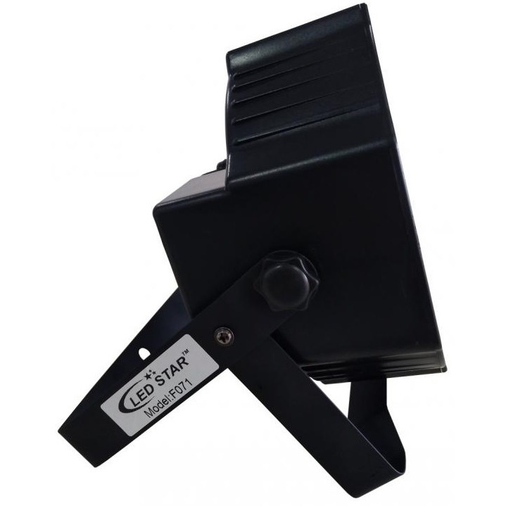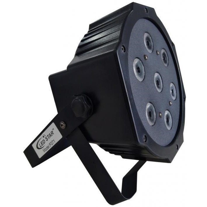 Led Star F071 - Классический колорченджер, имеющий лаконичный дизайн. Подойдет как для профессиональных осветителей, так и для индивидуального использования. Имеет семь встроенных RGBW модулей по 10 Вт каждый, что позволяет решать поставленные перед ним задачи. Поворот составляет 25 градусов. Фиксируется угол поворота механическими зажимами с каждой стороны. На обратной стороне есть контрольное табло, используемое для различных показателей, выходы DMX512, выходы на питание, микрофон и регулятор технологических настроек.