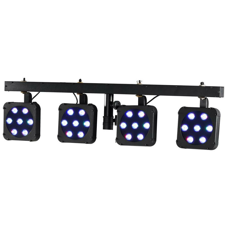 ACME LPB-4-7TC комплект светодиодных панелей заливного света отличается компактностью и малым весом, а потому станет превосходным выбором для выездной работы мобильных диджеев или живых выступлений музыкальных групп. При этом, несмотря на свои миниатюрные размеры (ширина профиля лишь 9 см), световые приборы очень надежны и с легкостью переносят транспортировку. Комплект включает четыре одинаковых светодиодных прожектора, излучатель каждого из которых состоит из семи трехцветных (RGB) светодиодов. Перекладина с прожекторами укреплена на устойчивой подставке, которая оснащена небольшой панелью управления. Устройство удобно собирается и разбирается, а светодиодная конструкция снижает энергопотребление, сокращает теплоотдачу и увеличивает долговечность приборов (работа на комплекте штатных светодиодов не менее 50000 часов). Стойка/перекладина в комплект поставки не входит и приобретается дополнительно.