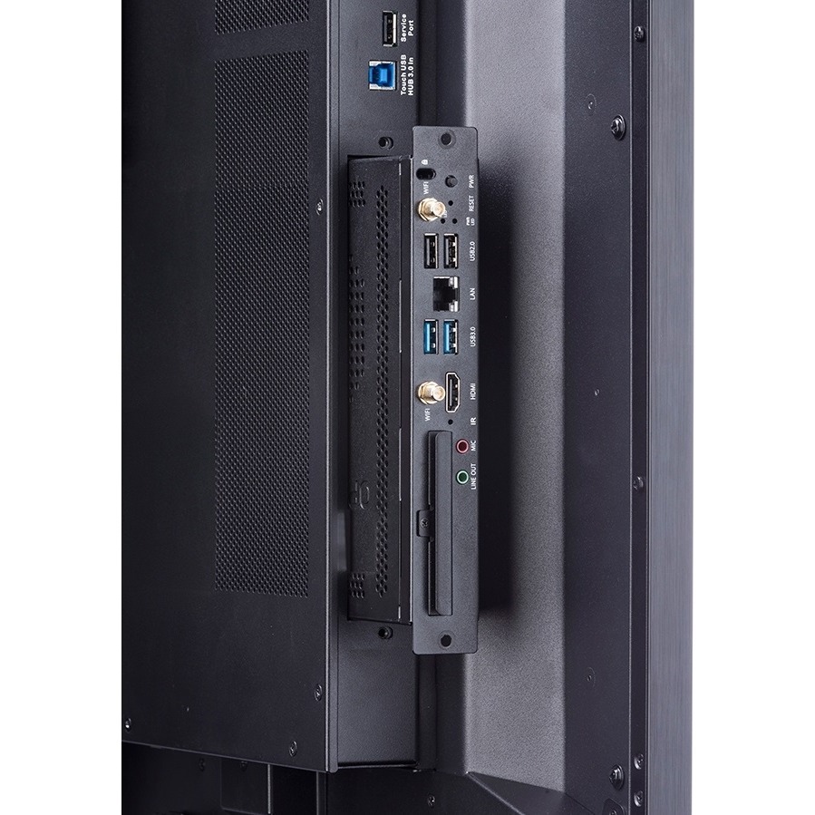 - Компьютер стандарта OPS (open pluggable specification) вставляется в специальный слот панели, техобслуживание и замена не требует снятия дисплея с крепления