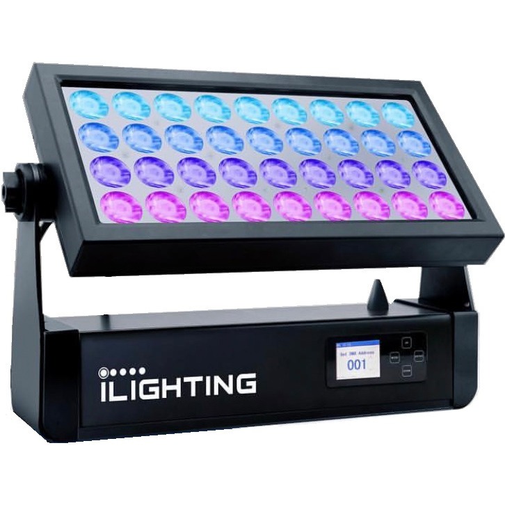 I LIGHTING IL-36x15W wall washer светодиодный прожектор с степенью защиты IP65. Световой поток обеспечивают 36 светодиодов каждый по 15 Вт и с системой цветосмешения RGBW красный, зеленый, синий, белый. Благодаря мощному световому потоку LED-модулей прибор идеален для подсветки больших зданий, уличных сцен и сцен в помещениях.