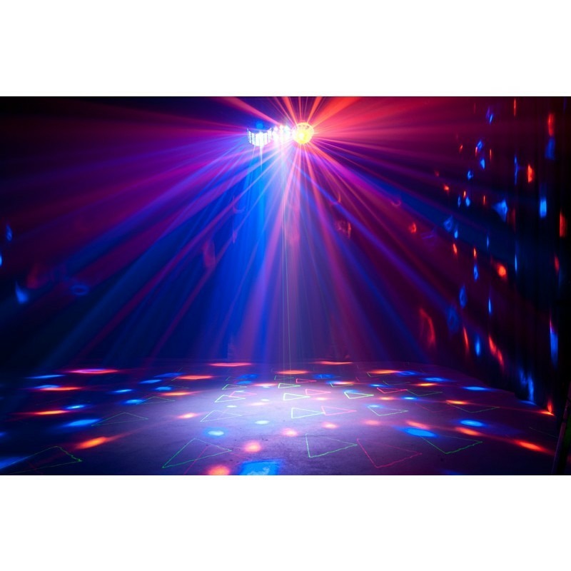 | Эффекты | Купольный эффект, дерби-эффект, стробоскопический эффект и чейз-эффект светодиодов, красно-зеленый лазер |