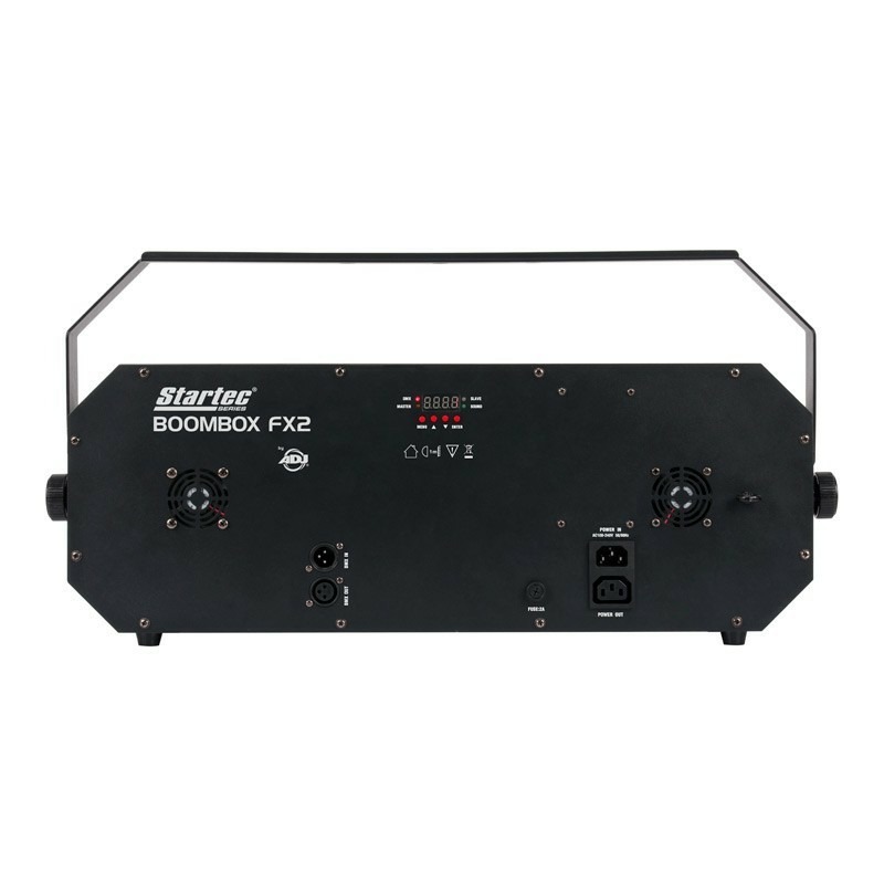Устройство Boom Box FX2, входящее в состав StarTec Series, сделает шоу незабываемым! Благодаря 4 световым эффектам в одном устройстве с 9 встроенными шоу и 63 преднастроенными цветовыми сочетаниями вы можете радовать зрителей с помощью одного устройства в течение многих часов.