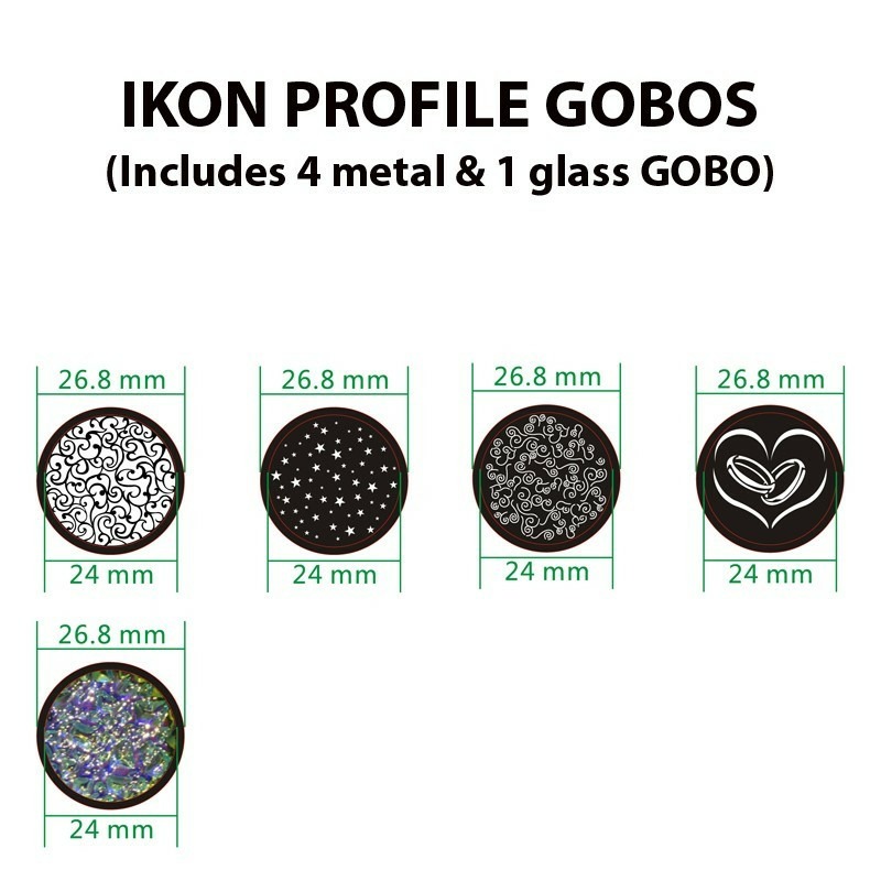Устройство Ikon Profile Pearl включает одно гобо из текстурированного стекла. Пользователи могут также устанавливать в слот для гобо сверху устройства нестандартные гобо. Другая важная особенность – это возможность вручную управлять углом луча, фокусным расстоянием и рамочными затворами. Угол луча регулируется в диапазоне 15-30°, что делает устройство пригодным для широкого спектра применений.