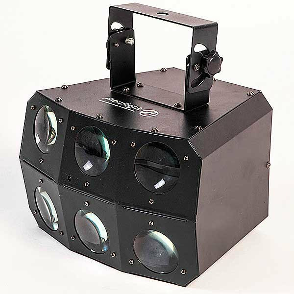 Шесть лучей четырех ярких и насыщенных цветов (красного, синего, зеленого и белого), встроенные программы, звуковая активация, восьми канальное управление по DMX протоколу - сделают световое шоу на Вашей дискотеки эффектным и запоминающимся!