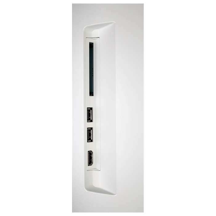 Поддерживается подключение носителей через USB. Можно воспроизводить видеофайлы, музыку, просматривать изображения. Также предусмотрено два порта HDMI для подключения оборудования.