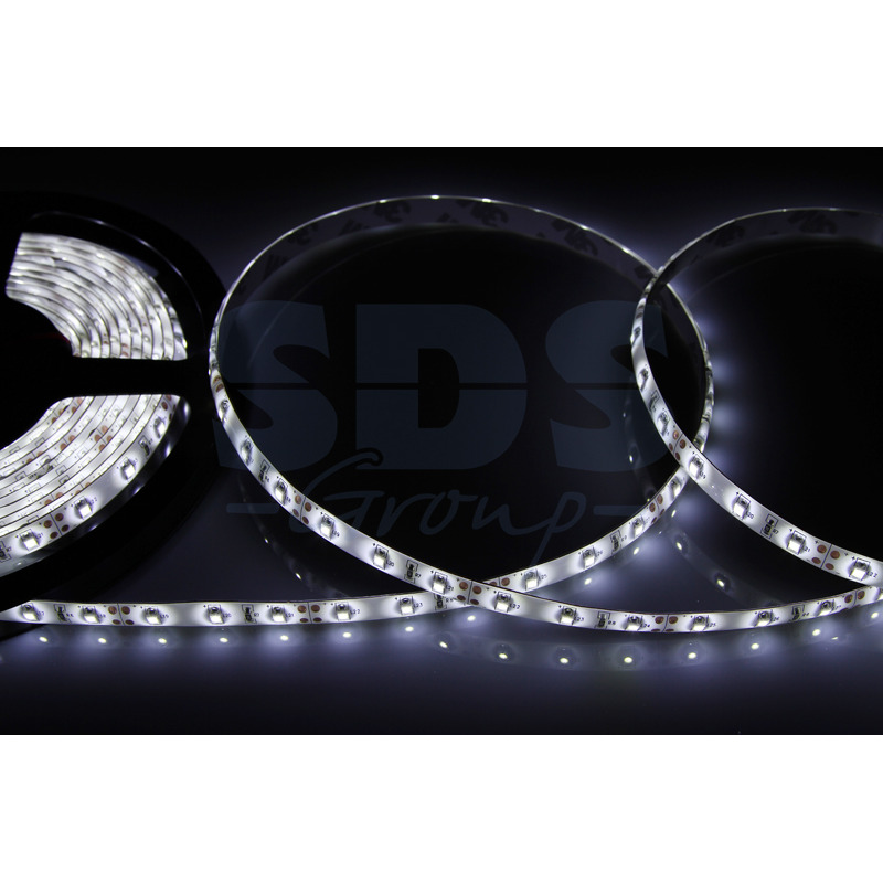 Светодиодная лента - гибкая лента на самоклеящейся основе, на которой установлены светодиоды. Может использоваться в подсветке интерьеров, изготовлении световых рекламных конструкций и пр. Работает от напряжения 12 В, поэтому при подключении к обычной бытовой сети 220 В потребуется источник питания 12 В. Светодиодная лента 12 В поставляется в катушках длиной 5 м. Следуя несложной инструкции, можно легко отрезать и подключить ленту нужной длины (модуль резки 50 мм). Монтаж ленты осуществляется вручную с помощью дополнительных аксессуаров (профиль, коннекторы, диммеры) и не требует специальной квалификации. Для более надежной фиксации ленты к поверхности можно использовать крепеж арт. 07-4207. Степень влагозащиты IP 65 - с влагозащитой, для установки вне помещений. Цвет свечения - белый. 60 диодов/метр.