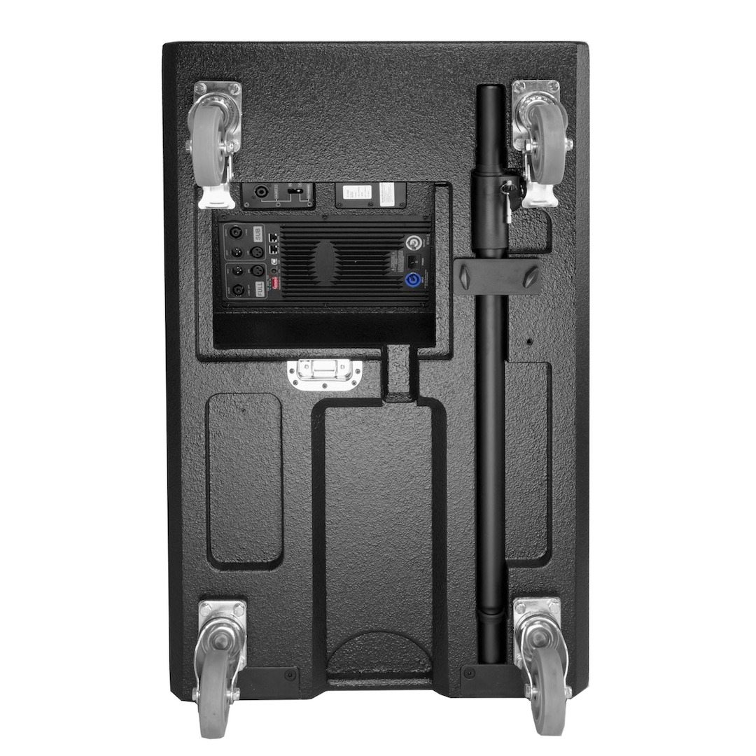 - Сабвуферы оснащены колесами со стопорами и имеют удобные для переноски ручки по периметру корпуса