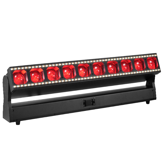 SUPER BEAM-LINE это многофункциональный линейный прожектор. В приборе установлены 10 супер-ярких светодиодов RGBW (4 в 1), мощностью 60 Вт. для создания ярких лучевых и динамических эффектов при малых углах луча и мощного заливного света при более широких углах зума. Так же в приборе присутствуют две лини светодиодов, включающих по 96 х 3 Вт. теплых и холодных светодиодов и 96 х 0,5 Вт. RGB светодиодов, для супер яркого строб-эффекта и различных динамичных эффектов. Так же прибор оснашен приводом по Tilt, что добавляет ему динамичности и уверсальности. Прибор найдет применение на больших и средних концертных сценах как в качестве заливного света, так и для создания ярких и динамичных эффектов. Так же прибор можно использованть на театральных сценах в ночных клубах, Тв-студиях и т.д.