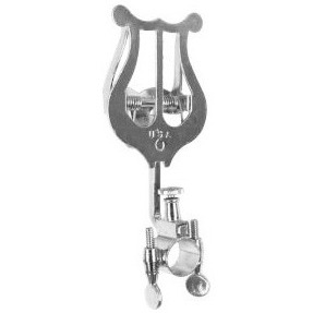 Лира – это приспособление, предназначенное для установки нот на духовом инструменте или рядом с ним, позволяя всегда держать ноты перед глазами, что делает его очень полезным и даже необходимым атрибутом для музыкантов, которые играют в маршевых оркестрах. Она выполнена из металла с посеребренным покрытием. Держатель для нот установлен на стержне квадратной формы диаметром 4 мм. Крепится лира при помощи специального хомута, который фиксируется при помощи винтовых зажимов и подходит для большинства типов труб.