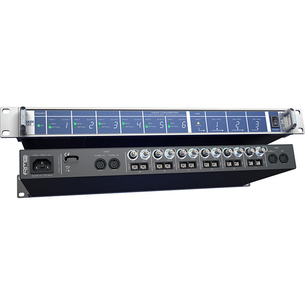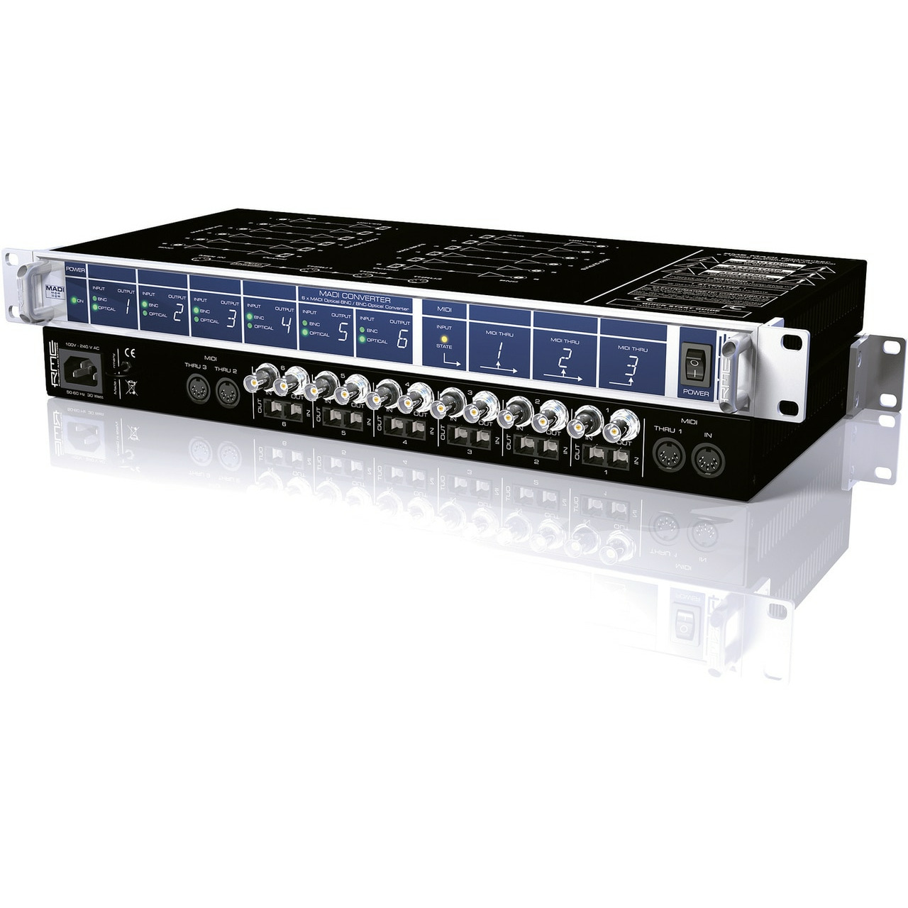 RME MADI Converter - 2 x 6 MADI Optical 2 x 6 MADI оптический коаксиальный конвертер, 1. Компактный 1-юнитовый рэковый интерфейс для конвертации цифрового аудио сигнала MADI из оптического формата в коаксиальный и обратно. 6 полностью независимых двунаправленных конвертеров (6 x MADI I/O optical and coaxial), 1 x MIDI Input, 3 x MIDI THRU.