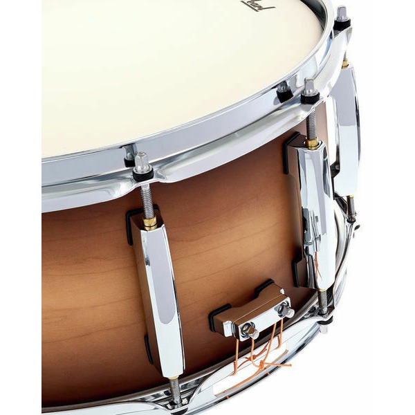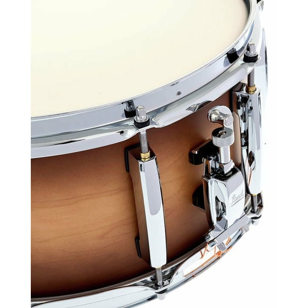 Барабаны имеют штампованные обручи SuperHoop II, стрейнер (машинка для подструнника) SR017, бриджевые лаги, стальные болты и пластики Remo.