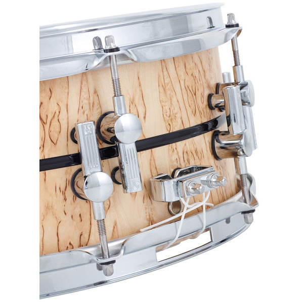 Существовавший до этого буковый малый барабан 13" x 5,75" с внешней облицовкой из скандинавской березы теперь украшен инкрустацией из дерева бубинга и стильными винтажными лагами Vintage Teardrop. Он также оснащен превосходным замком подструнника Dual Glide.