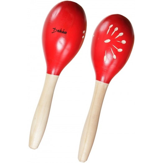Маракасы один из символов латиноамериканской танцевальной музыки, например: самба, сальса, ча-ча-ча. Обычно, музыкантом, играющим на маракасах, используется пара погремушек - по одной в каждой руке. Они деревянные и длинной 18 см, что делает их идеальными для детей. Кроме того, они красочные – яркого красного цвета с белым рисунком цветов. В итоге, это красивое и доступное дополнение к перкуссионному набору.