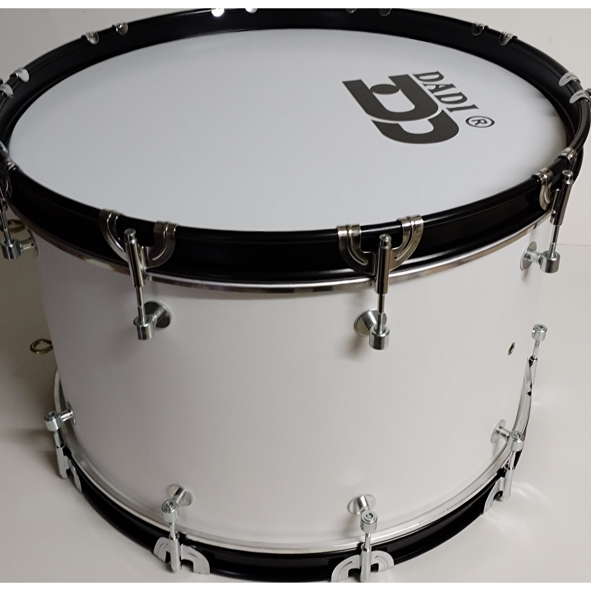 Маршевый барабан по сравнению с оркестровым имеет вытянутую форму, пластик обычно натянут очень сильно. Такие барабаны обеспечивают отрывистый и чистый звук. Для маршевых барабанов существуют особые требования к пластику, так как эти барабаны используют обычно на улице: необходимо, чтобы пластик стойко переносил различные погодные условия (перепады температуры и влажности), лучше всего с этим стравляются кевларовые пластики. Корпус маршевых барабанов выполнен обычно из алюминия, а струны – из синтетических материалов. Барабан имеет такую конструкцию, что железо нигде не соприкасается с обечайкой, что помогает предотвратить деформацию обечайки из-за сильного натяжения пластика. В нижних частях барабана могут размещаться специальные пластины для регулирования направления звука. Конструкция маршевого барабана разработана специально для игры в движении.