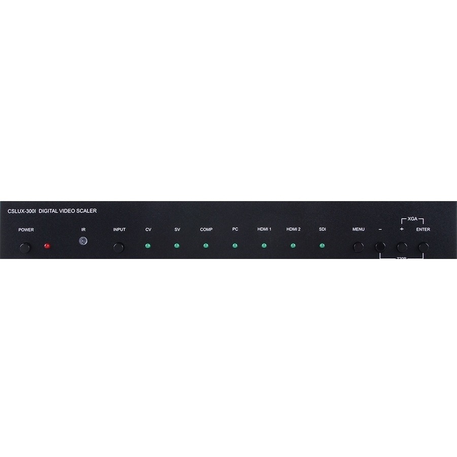 CSLUX-300I – масштабатор аналоговых и цифровых сигналов в сигналы HDMI и VGA с поддержкой аудио, позволяющий подключать многочисленные источники аналогового и цифрового видеосигнала к устройствам отображения с интерфейсом HDMI и VGA. Поддерживает выходное разрешение сигналов до 1080p или 1920х1200.