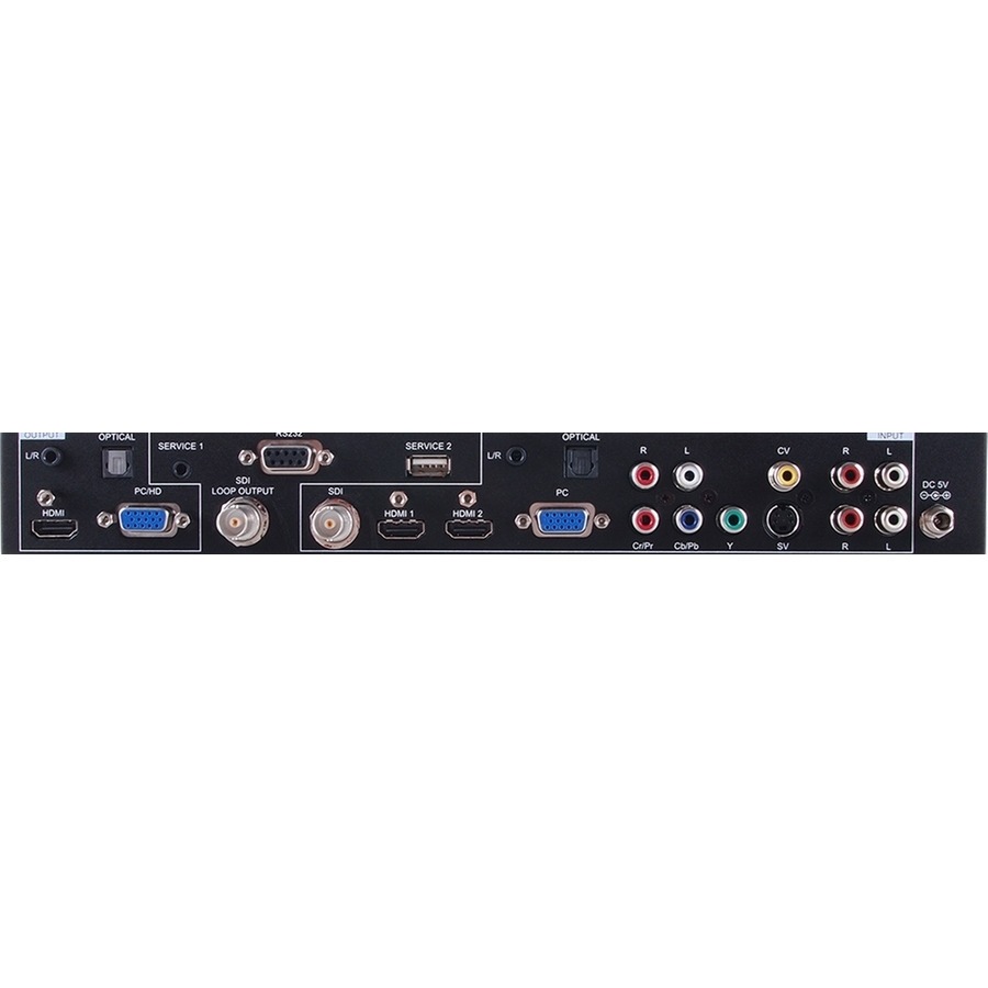 | Входы | 1 – SD/HD/3G-SDI, разъем BNC (розетка) 2 – HDMI, разъем типа А (розетка) 1 – VGA, разъем D-sub HD15 (розетка) 1 – композитное видео, разъем RCA (розетка) 1 – S-video, разъем mDIN 4-pin (розетка) 1 – цифровое аудио S/PDIF, оптический интерфейс TOSLINK 1 – компонентное видео YCbCr/ YPbPr, разъем 3хRCA (розетка) 1 – стерео аудио, разъем mJack 3.5 мм (розетка) 3 – стерео аудио L/R, разъем 2хRCA (розетка) |