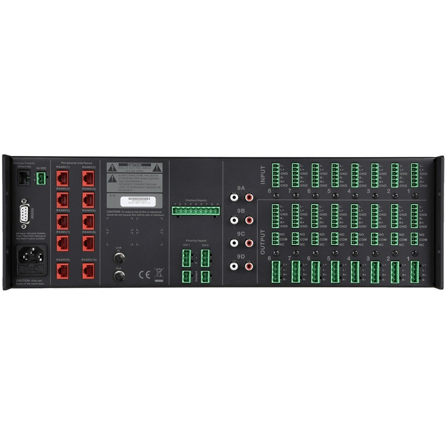 - 8 выходных релейных портов для управления другим оборудованием в каждой звуковой зоне, например для включения ламп аварийного освещения, установки определенного уровня громкости в обход регуляторов и т.д.