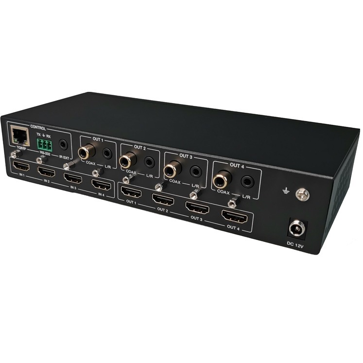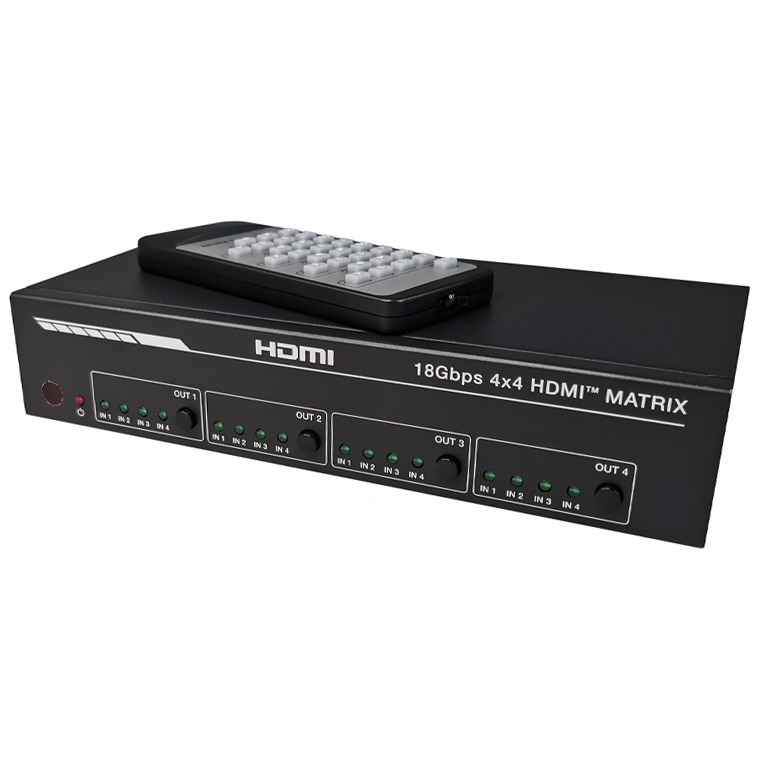 Матрица прекрасно подойдет для коммутации нескольких источников с HDMI выходами и выводом изображения на 4 экрана (телевизора, монитора или проектора) в любой конфигурации. Каждый вход и выход поддерживает разрешение до 4K 60Hz 444 и HDCP 2.2, а выходы могут быть индивидуально масштабированы 4K→1080p.