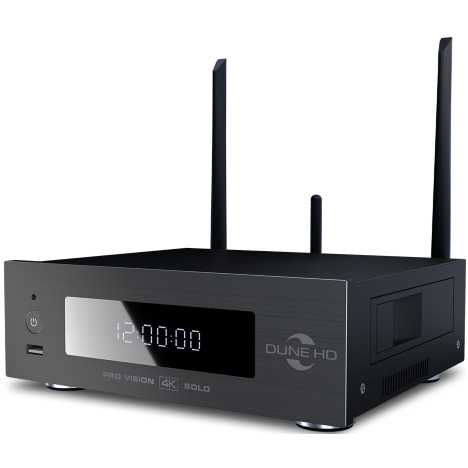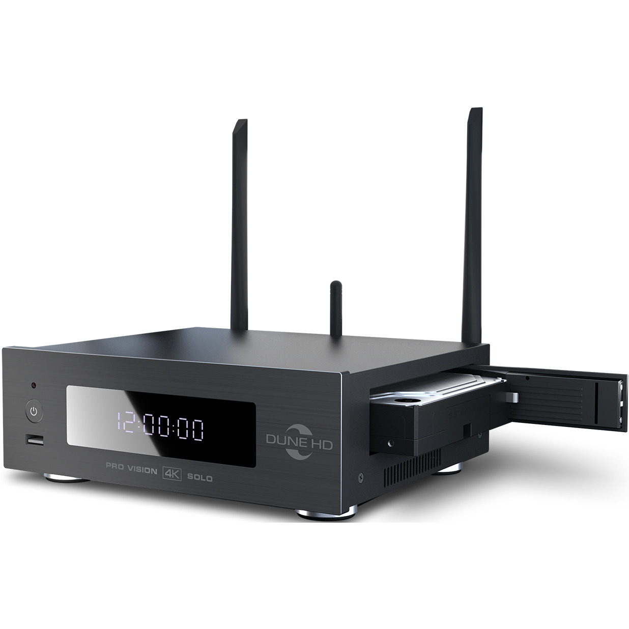 Dune HD Pro Vision 4K Solo - медиаплеер с HDD-отсеком на новейшем и самом мощном процессоре RTD1619 с поддержкой HDR10+, Dolby Vision, YouTube 4K HDR и расширенной памятью 4 ГБ. Компактный премиальный медиаплеер и Android Smart TV-приставка, поддерживает 4Kp60, HDR, HDR10+, Dolby Vision, HDMI 2.0b, HD-звук, BD4K, BD3D, Blu-ray меню, NFS, SMB, 1Gbit Ethernet, WiFi 2.4/5, USB 3.1, SATA.
