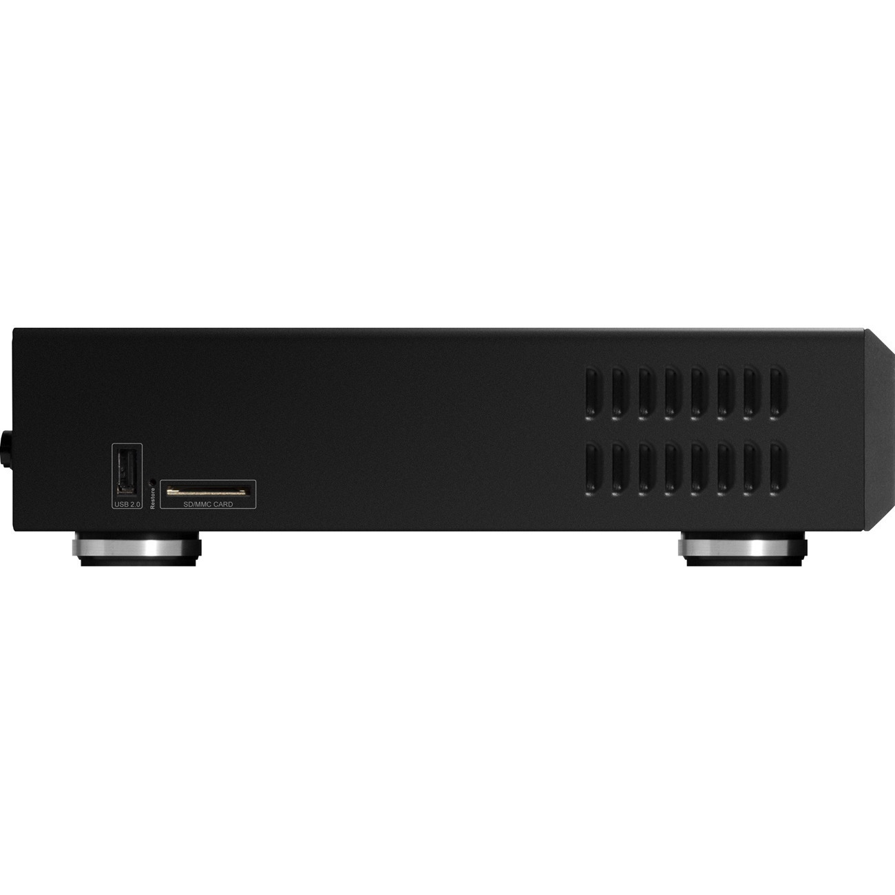 Медиаплеер поддерживающий все современные видеостандарты, в частности HDMI 2.0a, Ultra HD 4K, HDR, 3D-субтитры и HEVC / H.265 (глубина цвета — до 10 бит) и оборудованный отсеком для двух HDD-накопителей.