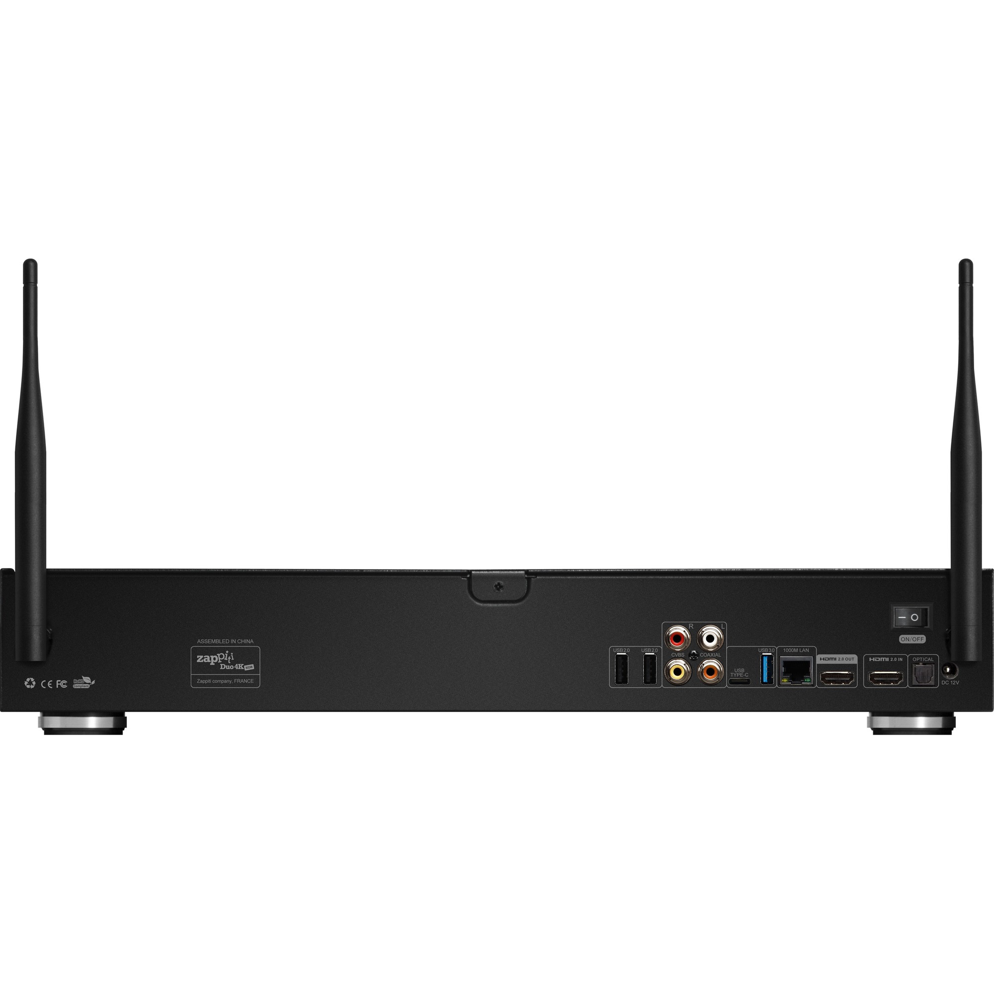 Ультрасовременный сетевой мультимедийный проигрыватель Zappiti Duo 4K HDR разработан во Франции. Его дизайн, функционал, программное обеспечение и графический интерфейс так же разработаны во Франции. Возможность установить в него два жёстких диска по 16 Тб каждый, в сумме 32 Тб, позволяет использовать его в качестве миниатюрного домашнего медиахранилища. На этих жёстких дисках может храниться домашняя медиатека: библиотека семейных фотографий, коллекция любимой музыки и видеоклипов, полюбившиеся фильмы, телесериалы, концерты и просто телепередачи. Одна из особенностей плееров Zappiti - это высочайшее качество изображения и звука, приближённые к профессиональному. Именно поэтому их рекомендуют использовать в качестве источника сигнала в многоканальных системах домашнего кинотеатра и даже очень "серьёзных", а так же совместно с кинотеатрами "в одной коробке", саундбарами, системами звука 2.1 и Hi-Fi стерео.