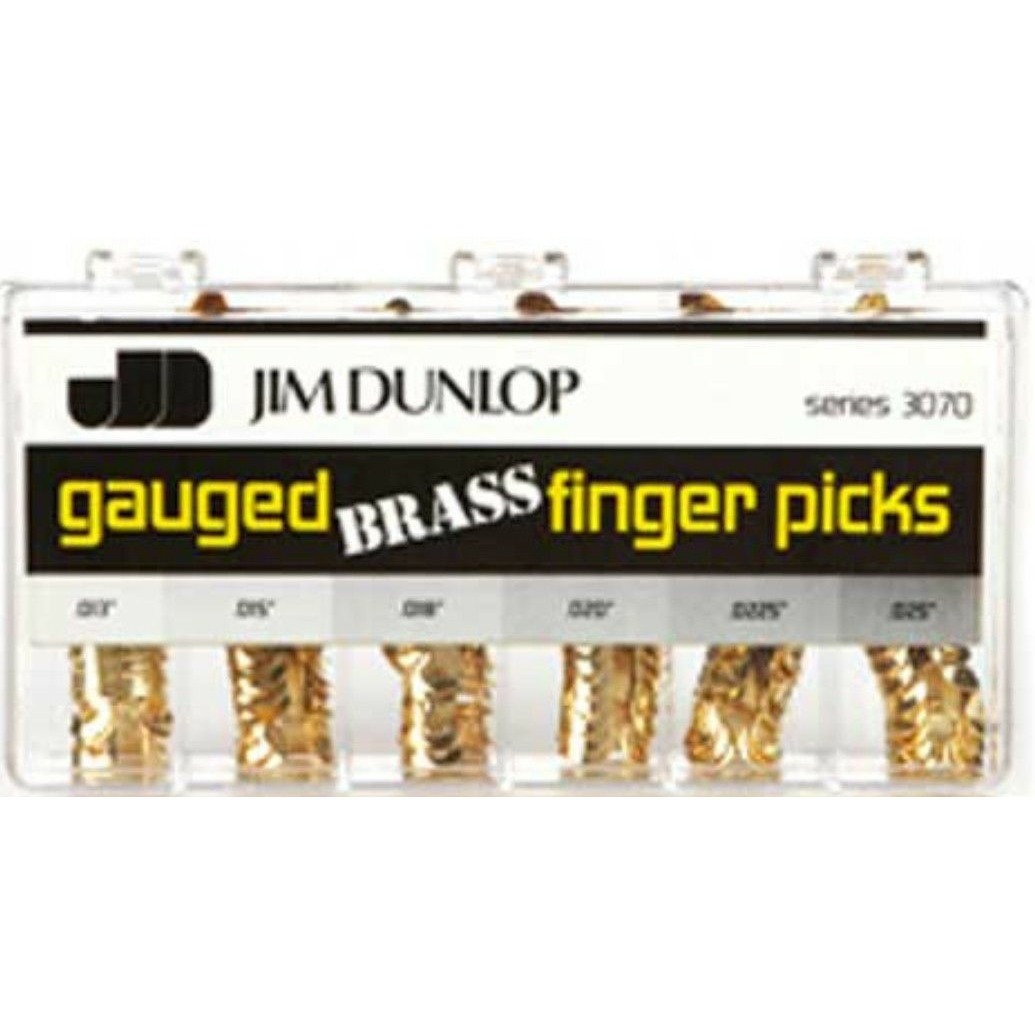 3070 Brass Коробка медиаторов на палец 120шт, латунь, 6 толщин, Dunlop