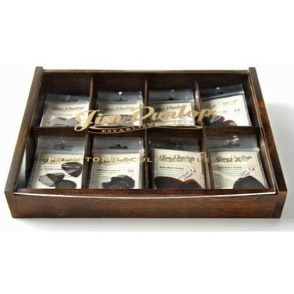 Привлекательная витрина медиаторов премиум-класса Primetone. Верхняя крышка из плексигласа подчеркивает грани корпуса из древесины и предоставляет отличный обзор пакетов медиаторов. 48 пакетов медиаторов (по 3 медиатора в каждом) 8 различных толщин и форм.