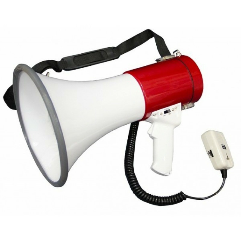 - В первую очередь это конечно мощность самого устройства. От мощности мегафона зависит уровень громкости передаваемых звуков. Диапазон мощности колеблется от 8 до 35 Вт в зависимости от модели. Очевидно, что чем выше показатель мощности, тем громче будет сигнал, соответственно и больший охват территории распространения звука.