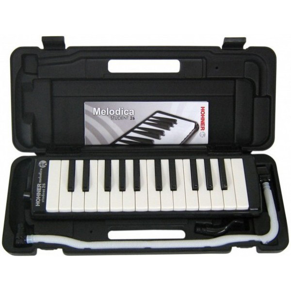Hohner Student 26 Black духовая мелодика. Инструмент отлично подходит как для профессионалов, так и для начинающих музыкантов Student 26 расширил линейку мелодик, предназначенных для школ и начинающих музыкантов. В дополнение к обычному способу, на этой модели можно также играть горизонтально. Открытая крышка кейса также может использоваться как подставка под ноты.