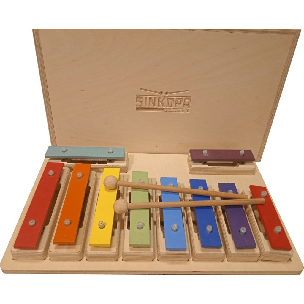 SGBS11-C Металлофон разборный (глокеншпиль) сопрано 8 нот+ 2 полутона, цветной, 10 палочек, в деревянном кейсе, Sinkopa
